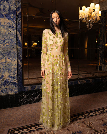 AMANDA GOWN GREEN EMBROIDERED TULLE