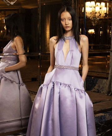 ESTELLA GOWN PURPLE EMBROIDERED DUCHESSE