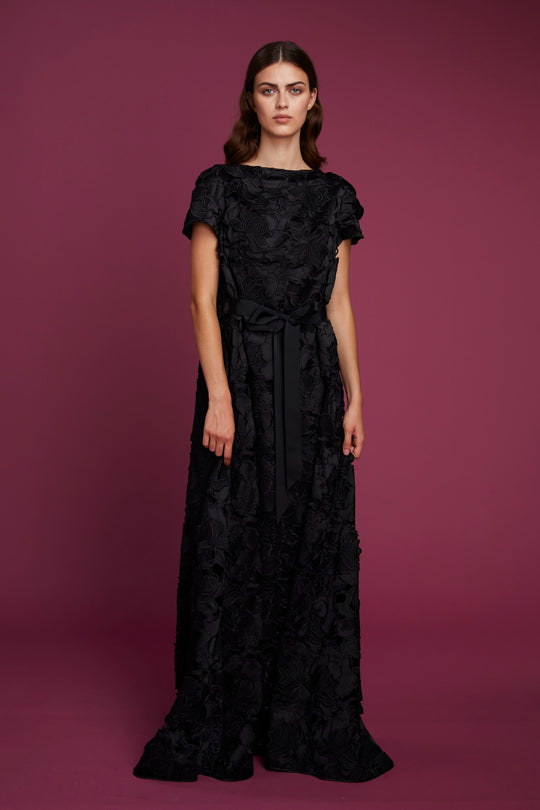 VIRGINIA GOWN BLACK EMBROIDERED CREPE