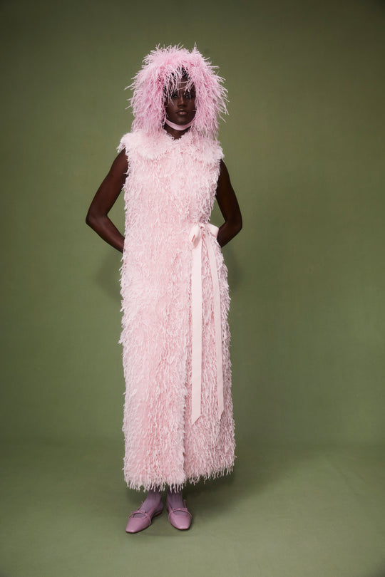 NOELLA COAT FAUX FUR AND FEATHERS PALE PINK