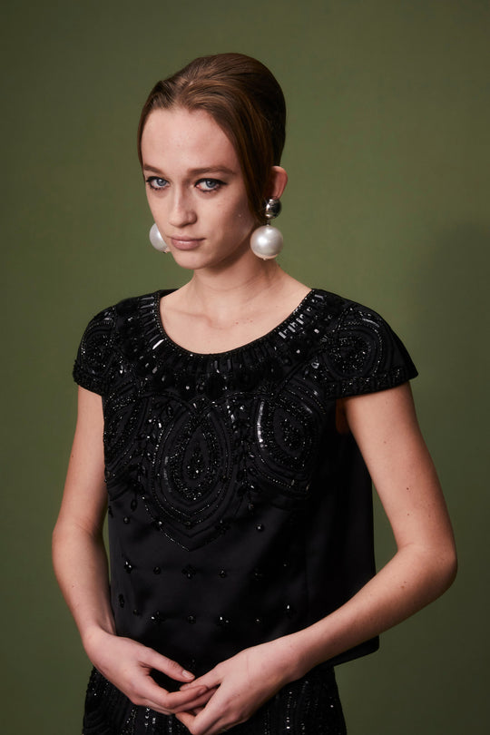 VIRGIL TOP BLACK EMBRODIERED DUCHESSE