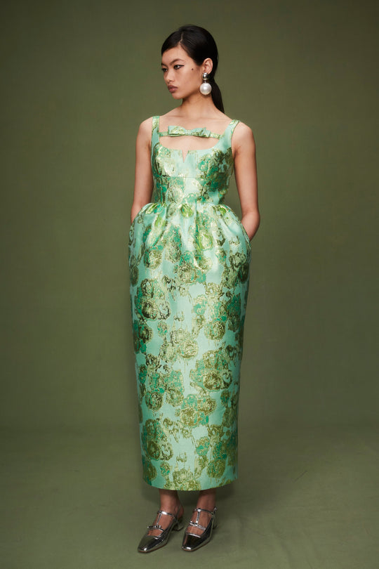CHERYL MIDI DRESS IVORY GOLD JAQUARD
