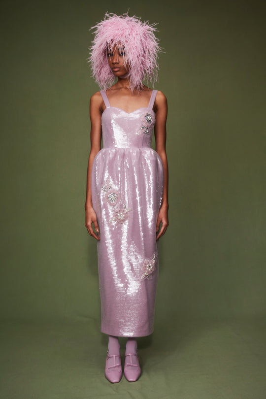 ESMERALDA DRESS LILAC EMBROIDERED SEQUINS