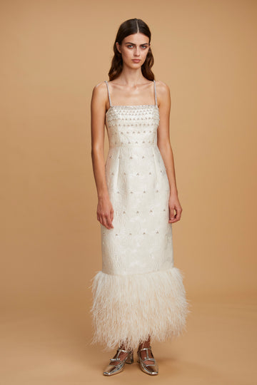 ASTRA DRESS WHITE EMBELLISHED JACQUARD