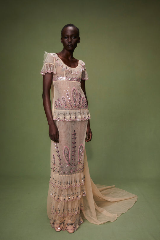 DORIAN GOWN APRICOT EMBRODIERED TULLE