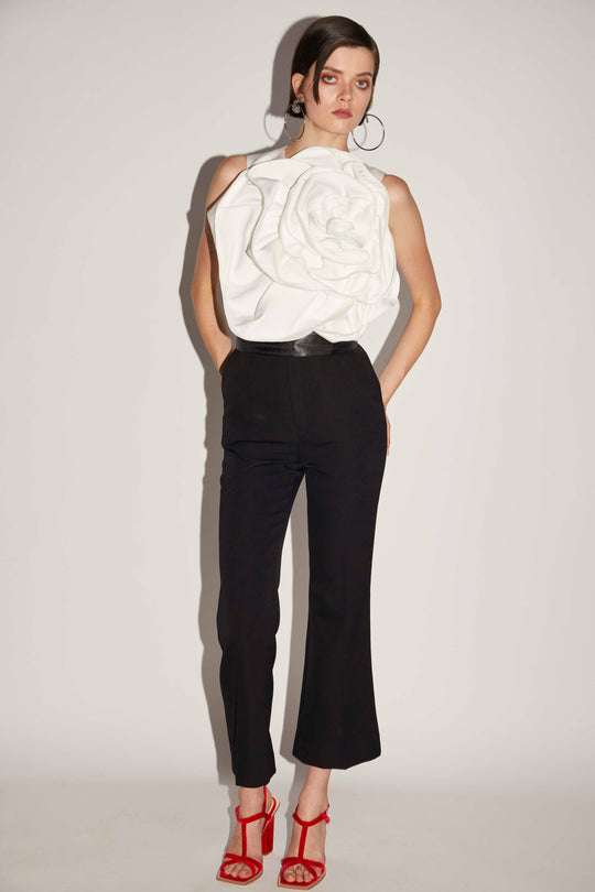 The Adam trousers are high waisted cropped tailoring trousers with a front pleat, cut from an Italian light summer wool fabric.