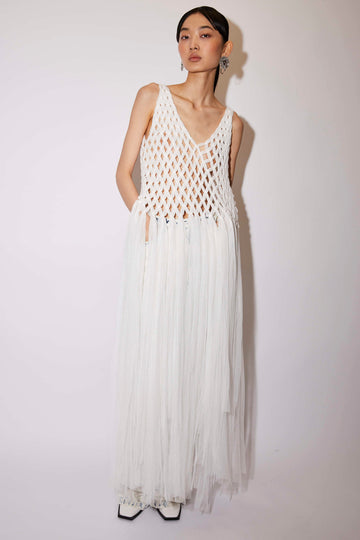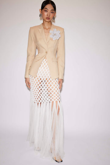 CATALINA SKIRT WHITE EMBELLISHED MACRAME'