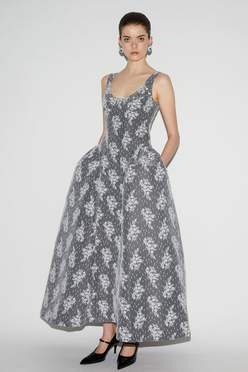 FRANCINE DRESS BONDED LACE MESH BLACK AND WHITE