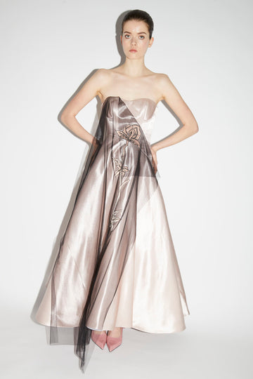 GAIL DRESS ROSE SATIN AND EMBELLISHED TULLE