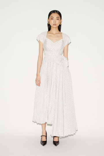 TABITHA DRESS WITHE BLACK POLKA DOT FLOCKED CREPE DE CHINE