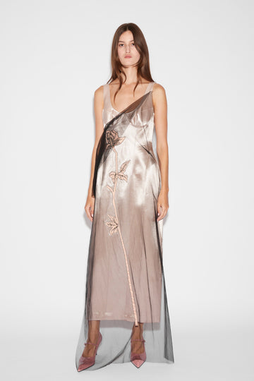 BLAKELY DRESS CHAMPAGNE SATIN AND EMBELLISHED TULLE