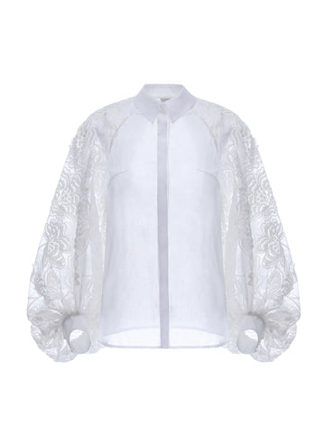 THELMA SHIRT WHITE COTTON EMBROIDERED TULLE