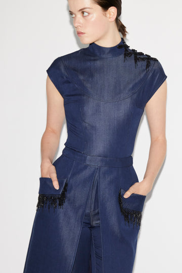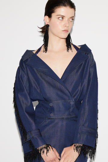 RIVER JACKET NAVY EMBELLISHED CREPE