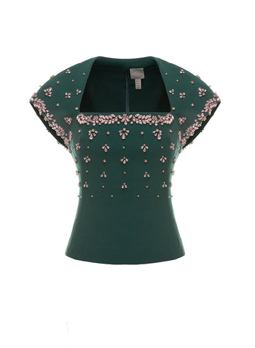 EVIE TOP BRIGHT APPLE DUCHESS SATIN