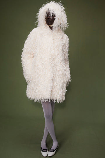 SELINA COAT IVORY FAUX FUR AND FEATHERS