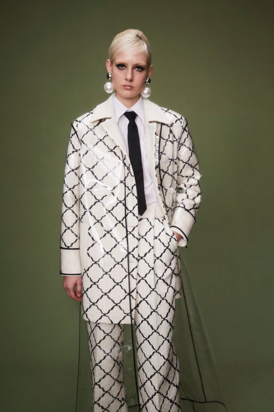 ELARA COAT WHITE AND BLACK EMBROIDERED TWEED