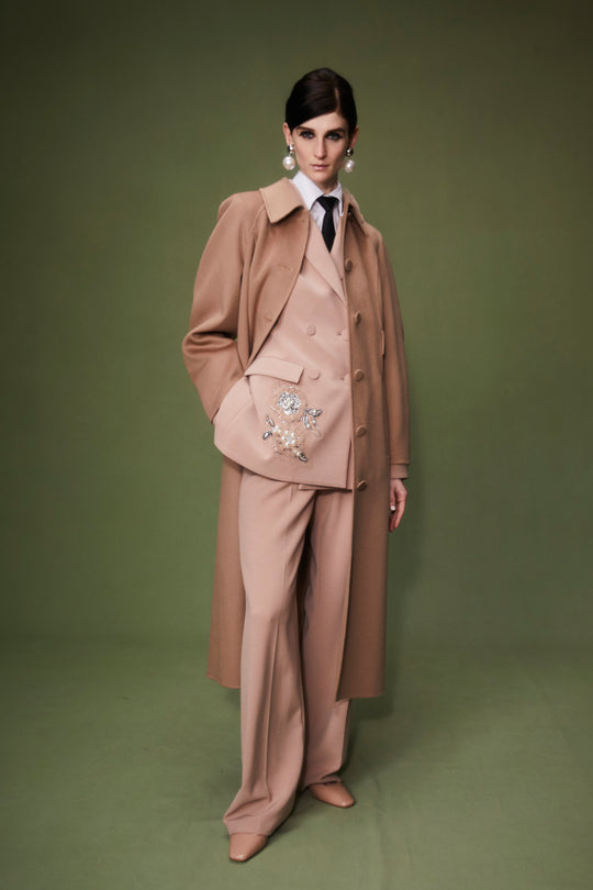 ATLAS JACKET CAMEL EMBROIDERED CREPE