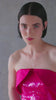 The Greta Gown is a strapless bustier dress cut from fuchsia shimmering sequins and tonal fuchsia duchesse details.