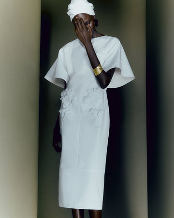 RUMI DRESS WHITE EMBROIDERED DUCHESS