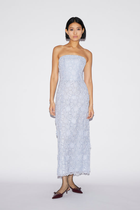 LORETTA DRESS PERIWINKLE EMBROIDERED COTTON