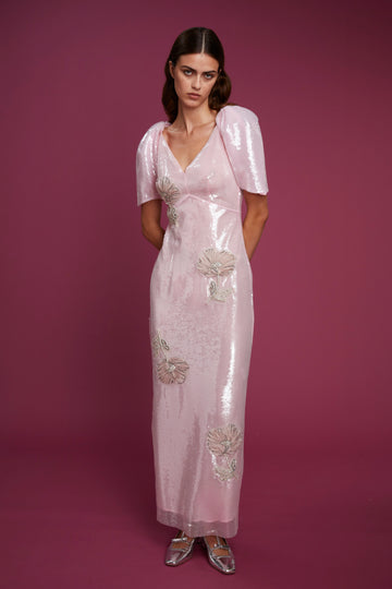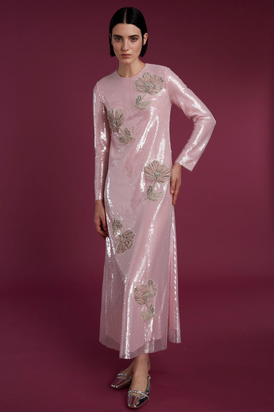 EDEN DRESS PINK EMBROIDERED SEQUINS