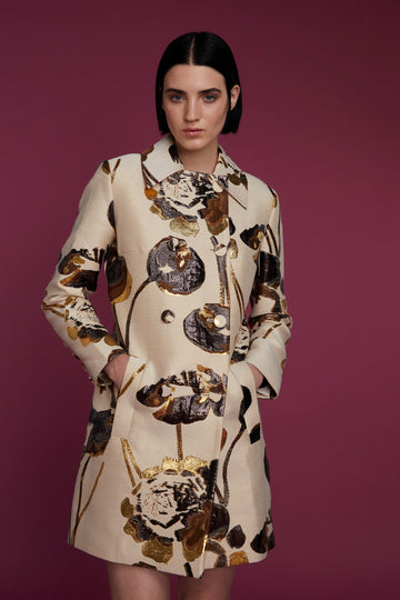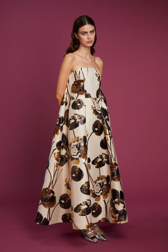 CHERYL MIDI DRESS IVORY GOLD JAQUARD