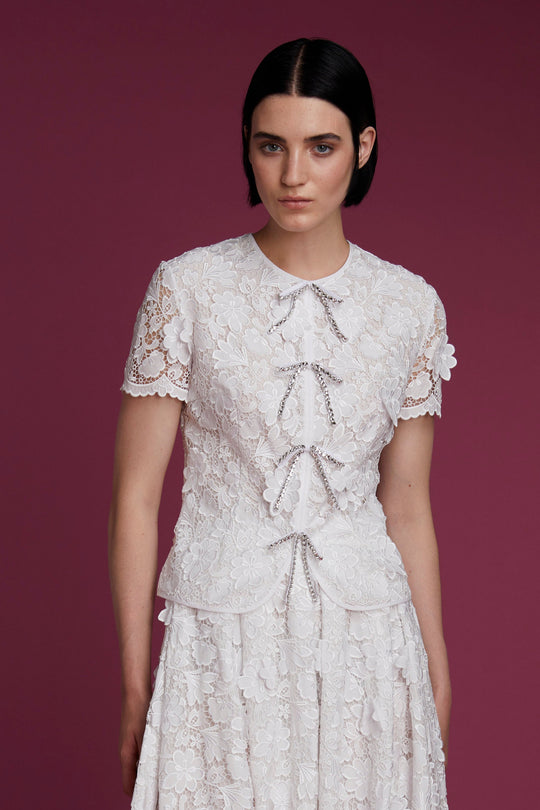 CLAUDINE TOP WHITE EMBROEIDERED COTTON