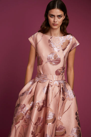 KATHY DRESS PINK EMBROIDERED DUCHESSE