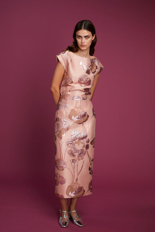 OAKLEY SKIRT PINK FLORAL JACQUARD