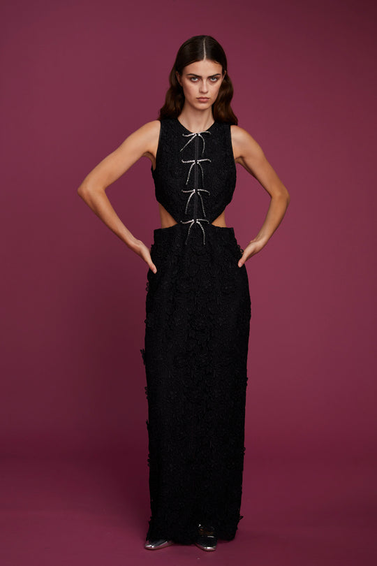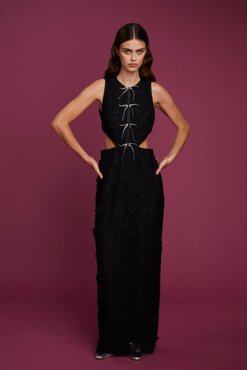 SAFFI GOWN BLACK EMBROIDERED COTTON