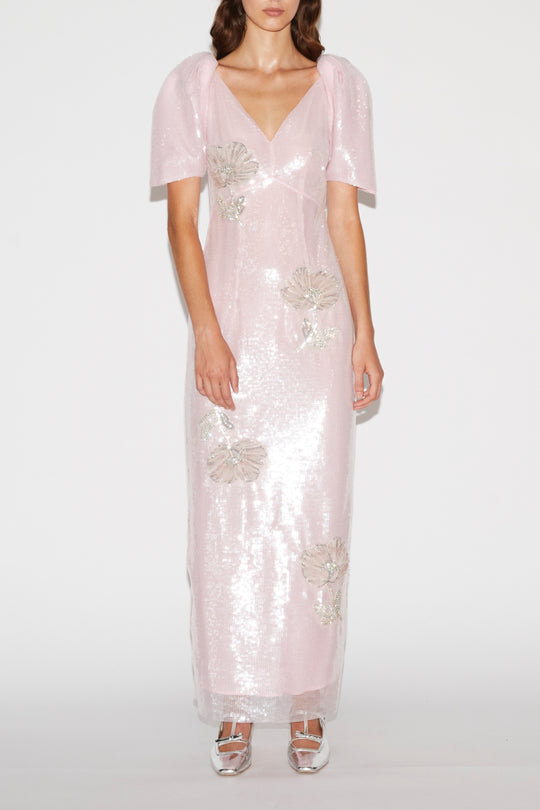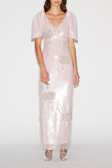 MYRNA DRESS PINK EMBROIDERED SEQUINS