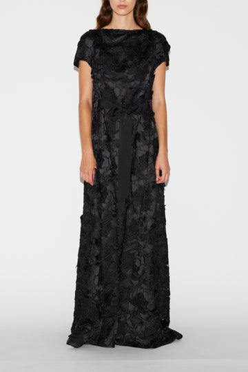 RANIA GOWN BLACK CUTWORK DUCHESSE