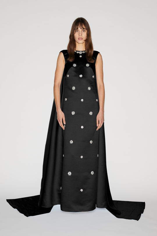 VIRGINIA GOWN BLACK EMBROIDERED CREPE