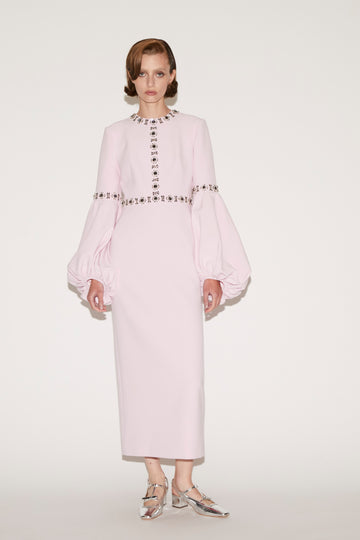 CALI DRESS CANDY PINK EMBRODIERED CREPE