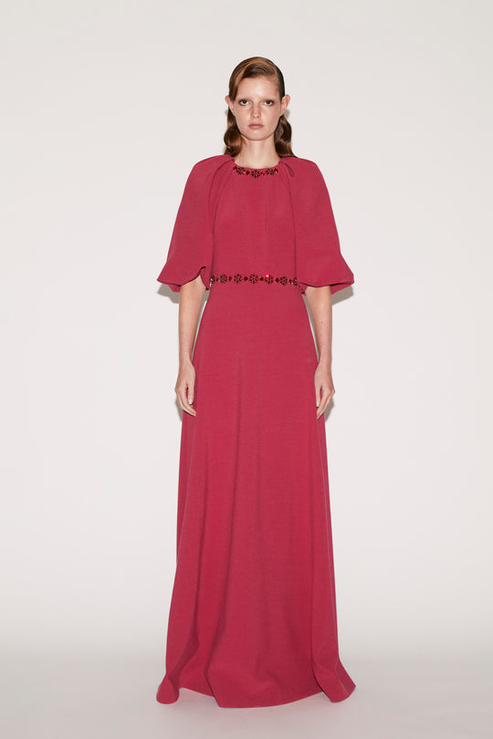 AGATA GOWN RASBERRY EMBROIDERED CREPE