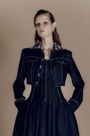 DEA GOWN MIDNIGHT EMBROIDERED DUCHESSE
