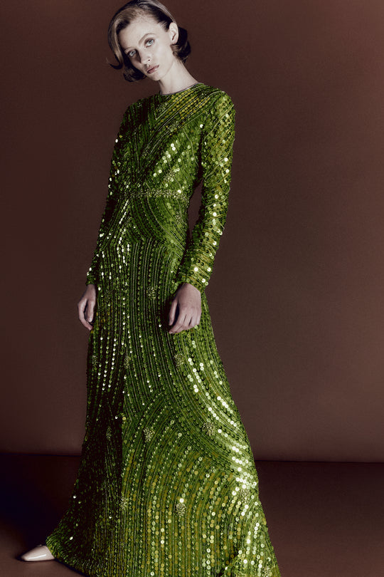 DELPHI GOWN CHARTERUSE EMBROIDERED SEQUINS
