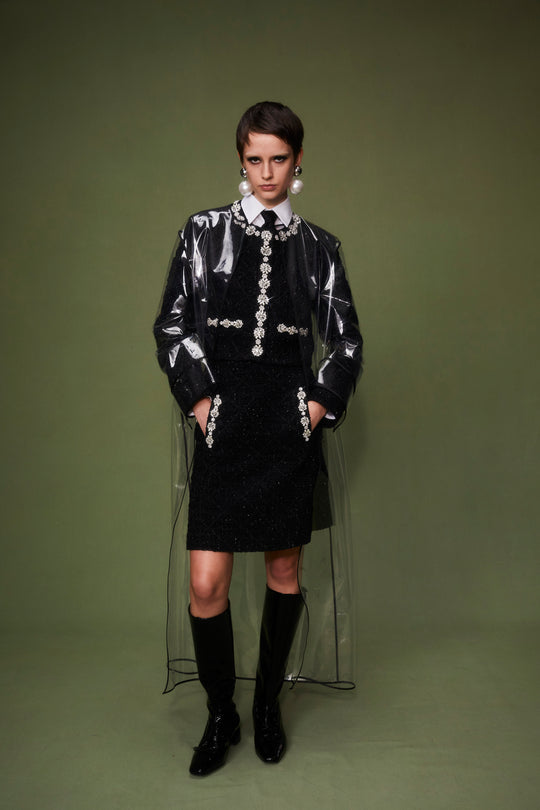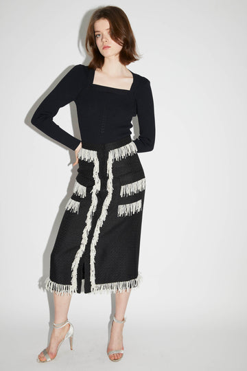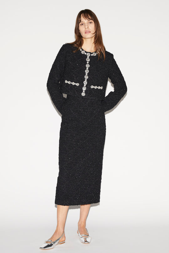 ORIANA SKIRT BLACK EMBROIDERD TWEED