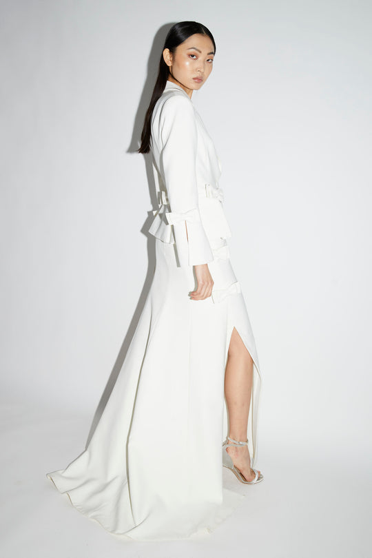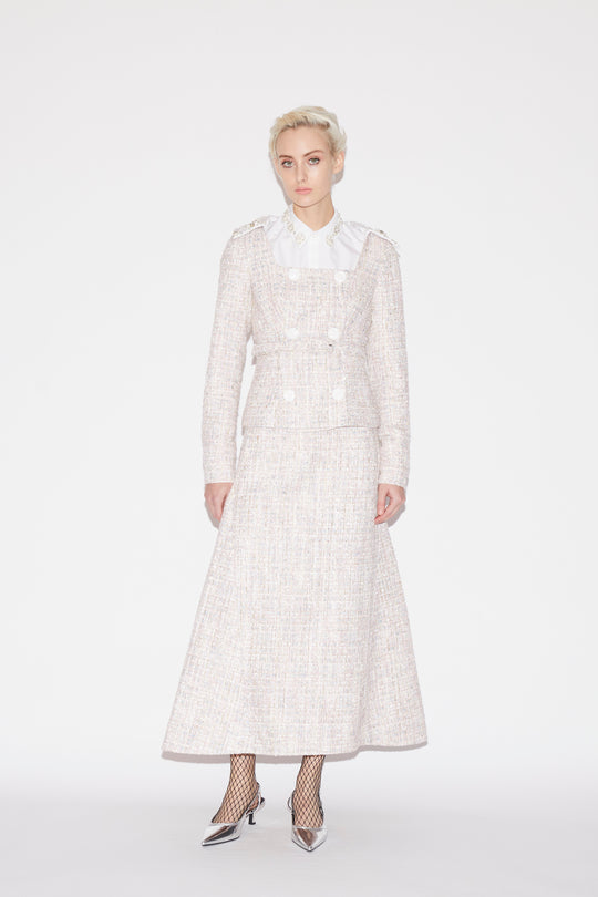 EVELINA SKIRT IVORY EMBROIDERED WOOL TAILORING