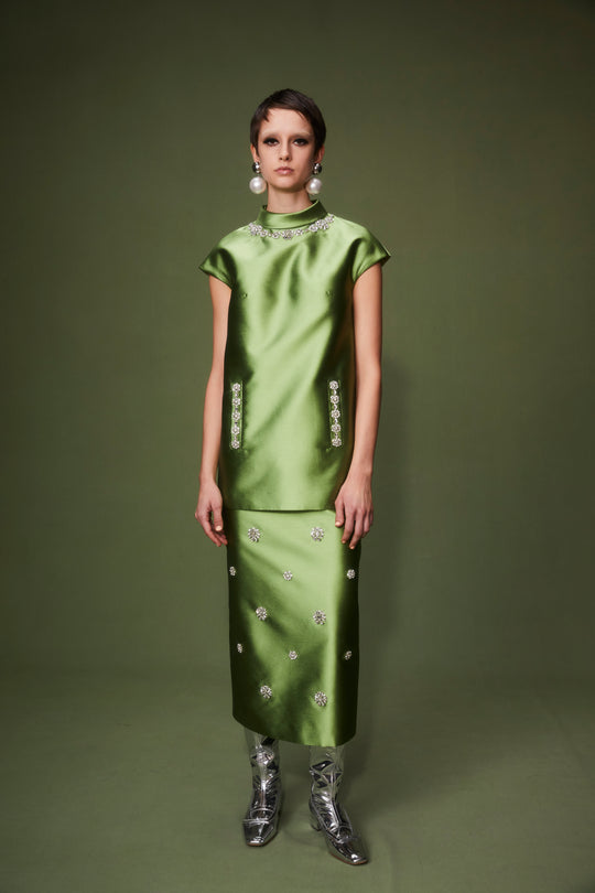 VANIA SKIRT JADE EMBELLISHED MIKADO