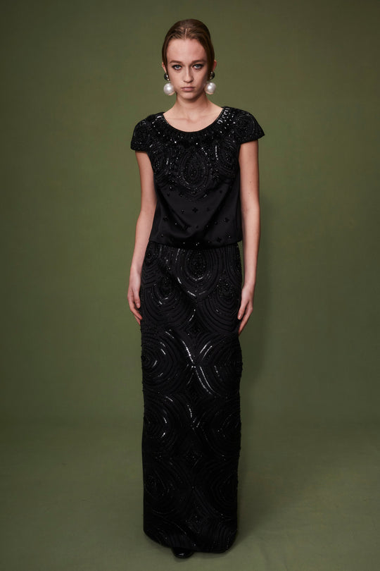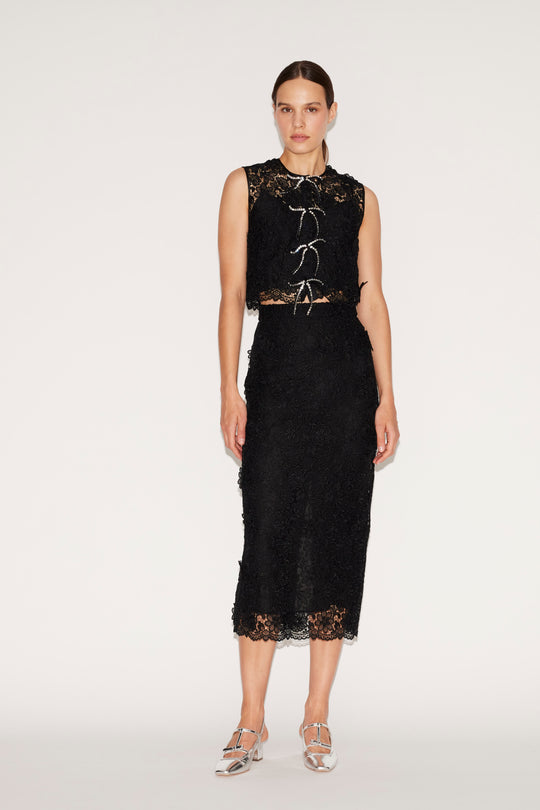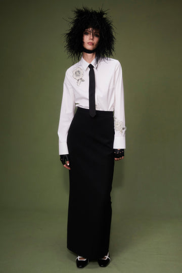 LIORA SKIRT BLACK EMBROIDERED DUCHESSE